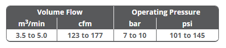 C35-10 – C50 compressor data table