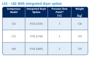 L55 – L80 Integrated Dryer Technical Data Air Compressor
